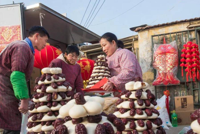 太河大集上也有不少淄川本地特色美食,峨庄肉蛋、淄川烧饼、窝窝头年糕……