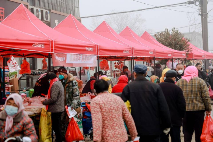 大红对联和福字喜气洋洋,各种水果、小吃琳琅满目,摊贩的叫卖声、人们的讨价还价声不绝于耳……大集的味道和声音饱含着一方乡土人情,更折射出当地人生活的幸福和美好。