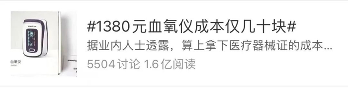 近期#千元血氧仪成本仅几十元#的话题占领微博热搜。