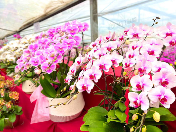 在莲洲镇东湾村的悦顺兰花基地,蝴蝶兰竞相绽放,气质高雅,花色缤纷绚丽。该兰花基地以蝴蝶兰花卉种植和经营为主,目前,该基地还专门设置了展区、直播间,采用线上线下相结合的方式销售。
