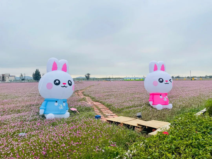位于平沙镇前锋社区的平沙水稻种植(示范)基地内的“花田喜事”春节花卉展,共有16万平方米的花田种植面积。目前,玫红、粉色、粉白各色相间的格桑花正陆续开放,即将进入盛花期。