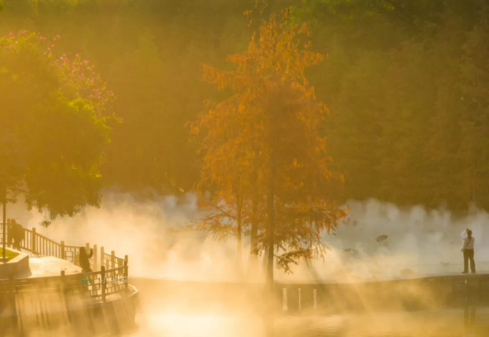 红叶映水、云雾缭绕、树影斑斓……美得像一幅画,约上三五好友,赏景拍照,尽情享受冬日的美好时光。