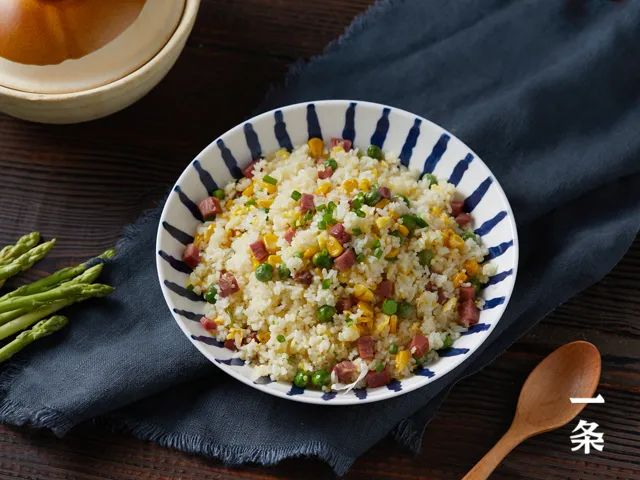 切成丁的火腿心,搭配青豆、玉米粒、鸡蛋,炒出的米饭实在是香,让人吃过一次就能爱上。