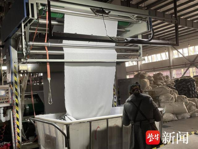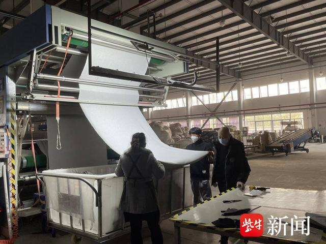走进江苏晟宏生态纺织科技有限公司生产车间,数台智能化设备一字排开,机器声此起彼伏,工人们各司其职,在不同生产线上加工、定型、质检,一派忙碌景象。