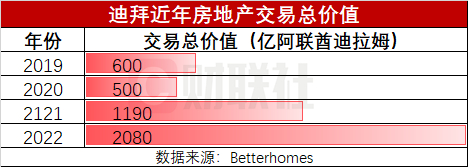 数据还显示,2022年售出的房屋总价值约2080亿迪拉姆(约合566亿美元),较2021年增长了近80%;价格方面,虽然房价在2021年录得了21%的涨幅,但2022年仍能在这个基础上再增11%。