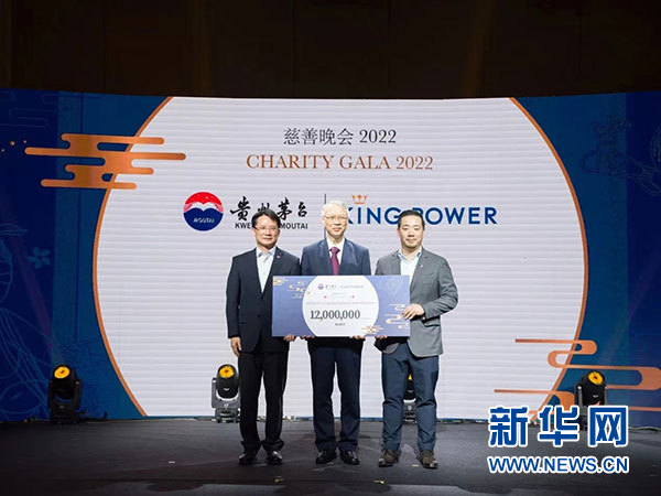 “茅台公益行动APEC(泰国)站”慈善拍卖晚宴上,茅台将拍卖所得1200万泰铢全部捐给Ramathibodi基金会助力泰国慈善公益事业的发展。新华网发