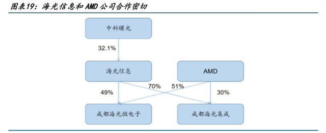 其中,海光微电子由AMD持股51%,海光信息持股49%,负责接受AMD基于X86指令集的Zen架构授权,并负责找台积电等代工厂生产芯片;海光集成由海光信息持股70%,AMD持股30%,合资公司负责从海光微电子购买IP授权设计芯片,以及芯片的销售工作。