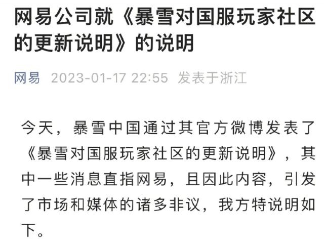 针对#暴雪中国再次发文# ,网易方面发表声明如下: