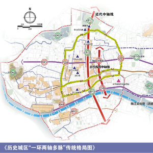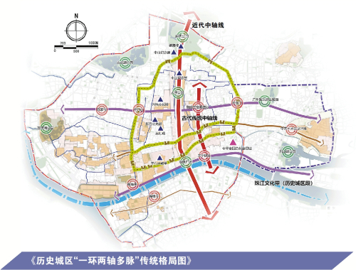 《规划》提出保护历史城市“一环两轴多脉”的传统格局——