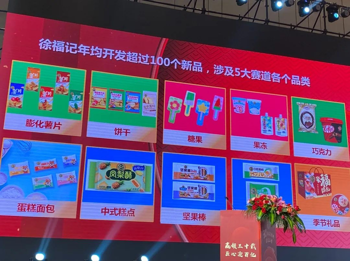 2022年,徐福记在成立30周年之际,一次性推出30大系列200余个新品,产品种类多达1400多种,并喊出了“美味聚福气,天天徐福记”的新品牌口号,向休闲零食领域全面进军。