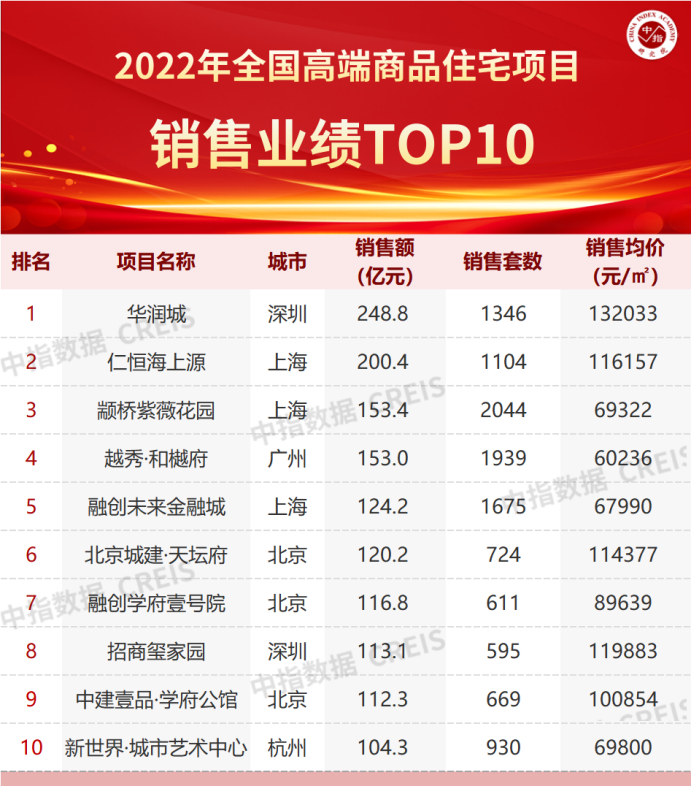 2022年全国高端住宅销售TOP10揭晓,非一线城市黑马项目突围?
