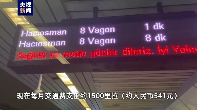 伊斯坦布尔市民 埃罗奥卢:去年我每天的交通费用大约是30里拉(约合人民币11元),但今年公共交通费用提价后,每天要花大约50里拉(约合人民币18元),这就意味着每月通勤费增加了约600里拉(约合人民币216元)。