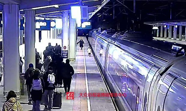 1月14日19点41分由杭州东开往青岛的G283次列车在淄博站停车2分钟就在列车关门前一刹那一名小女孩突然从13号车厢前门跑下了车正在15号车厢位置值班的客运员张华见状立马跑了过去在列车开动的同时将孩子抱住直到列车驶离站台见列车开走,小女孩情绪激动,大哭起来。张华和随后赶来的客运值班员刘志勇一边安抚小女孩,一边紧急联系G283次的列车长,找到了车上小孩的母亲,告诉她孩子平安无事。经了解,小女孩4岁,母亲带她从杭州坐车回青州过年,列车在淄博站停车时,母亲忙于收拾行李,没注意到孩子自己跑下了车。经过联系,小女孩母亲打算从青州站下车后,再和家人开车到淄博站认领孩子。