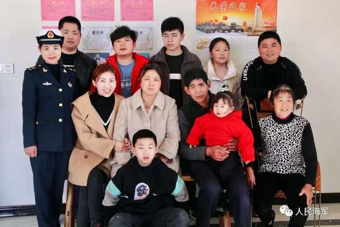 当兵前不懂事,没有好好关心自己的父亲,当兵后陪伴家人的时间越来越少。这次休假回家赶上父亲六十大寿,亲戚朋友都来为父亲庆生,父亲非常开心,留下这张全家福。看到父亲的白发越来越多,脸上的皱纹越来越深,我不禁感到一阵心酸。我想告诉他:“女儿已经长大,我一定会努力工作,做一名优秀的海军女兵。”