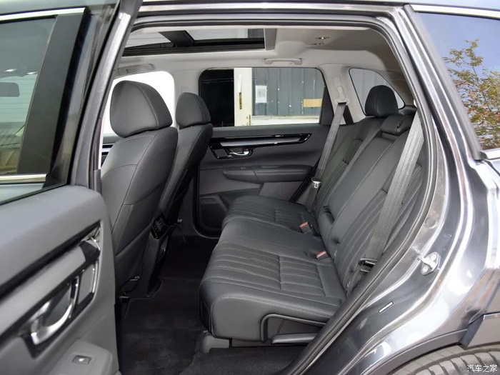 座椅加入了类似表链的纹理,质感出众,不过这是顶配车型专属。后排座椅造型饱满,中间配备有扶手和杯架,空调出风口和电源接口也没缺席。
