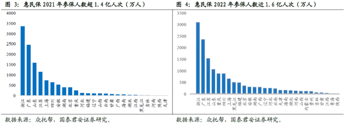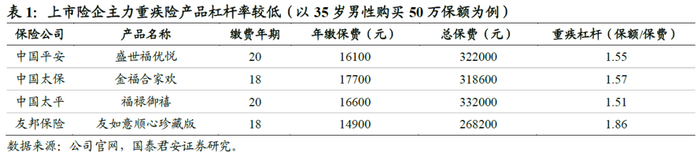 客户需求的升级来自于惠民保等普惠保险的教育以及商业健康险低保障杠杆的认知。近年来随着互联网保险、惠民保等普惠保险的快速发展,客户对于保险的认知快速提升,尤其惠民保得益于地方政府背书,通过提供高保额、低保费的惠民产品快速触达客户,2021年参保人数超1.4亿人次,2022年参保人数近1.6亿人次,进行了深刻的全民保险教育。与此同时,保险公司仍然采用“重渠道、轻产品”的商业模式进行业务扩张,隐含促成保险交易的逻辑为销售渠道的人情而非产品本身的功能,从而导致供需错配。当前保险公司主流的重疾险产品普遍面临重疾保障杠杆偏低的问题,以35岁男性购买50万元保额重疾险为例,普遍保费在26-34万元,对应重疾保障杠杆仅为1.5-1.9倍。