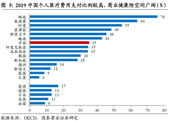 商业健康险的核心优势聚焦降低医疗费用负担,做有价值的产品是破局之道。当前国内居民的个人医疗费用支付比例仍然很高,2019年个人卫生费用支付比例为35%,大幅高于发达国家水平。而商业健康险的优势在于作为支付手段,通过大数法则解决客户低频大额的医疗费用负担,因此真正有价值的商业健康险未来仍有广阔的市场空间。正如中国银保监会原副主席黄洪在2022第三届中国寿险业转型发展峰会上所述,“健康保障方面,不能只限于医保目录做文章,要着力解决全部医疗费用的自付部分,把医保目录外的医疗费用作为商业健康险的保障责任范围,降低人民群众实际医疗费用负担和就医压力;不能只简单拒保老年人和带病体等高风险群体,要建立费率奖励机制,鼓励年轻人和健康群体购买,引导人们合理运动、健康生活,由“保疾病”向“保健康”转变;不能只提供消费型的产品,要探索账户式积累方式,鼓励年轻时为年老时做准备,实现生命周期健康保障的可持续性和完整性。”