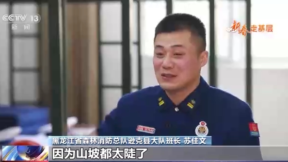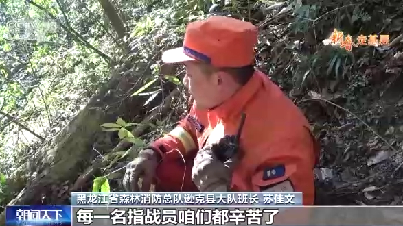 黑龙江省森林消防总队逊克县大队班长 苏佳文:当我们爬到第一座山的时候,当时就脑子都蒙圈了,因为山坡都太陡了,只见过这种直上直下的楼,没见过这种直上直下的山。