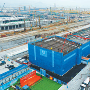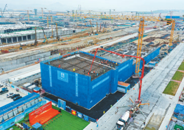 厦门翔安机场航站楼是片区核心建筑物,主要由1个主楼和与之连接的4个指廊、77座登机桥组成,是旅客登机、抵达的重要功能设施。此次完成混凝土浇筑的,首块屋面板位于其中一个指廊。