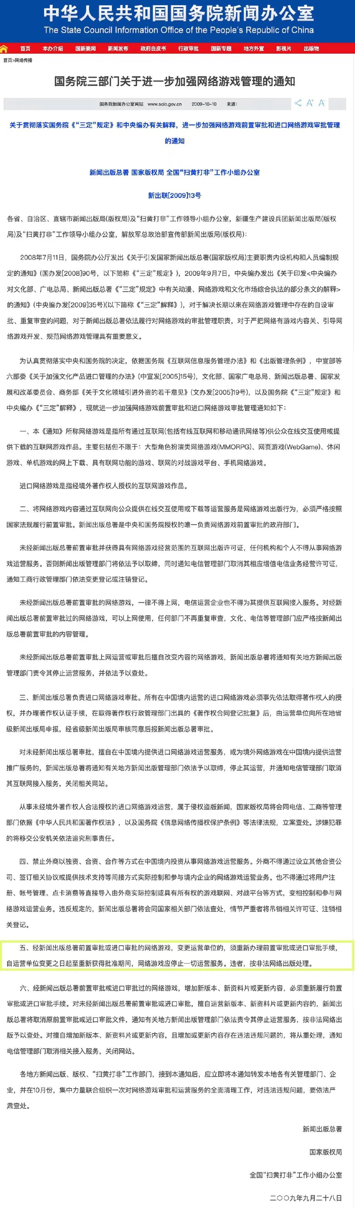 如今同样的问题再度出现,根据《三部门关于进一步加强网络游戏管理的通知》:经新闻出版总署前置审批或进口审批的网络游戏,变更运营单位的,须重新办理前置审批或进口审批手续,自运营单位变更之日起至重新获得批准期间,网络游戏应停止一切运营服务。违者,按非法网络出版处理。