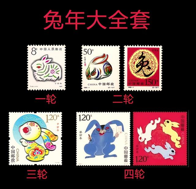 以兔年邮票为例:截至目前,我国已发行四轮生肖兔票,分别是1987年发行的《丁卯年》、1999年发行的《己卯年》、2011年发行的《辛卯年》以及2023年发行的《癸卯年》生肖邮票。