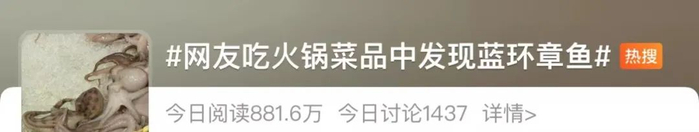 蓝环章鱼上热搜,还要从一位网友在火锅店晒照片讲起。