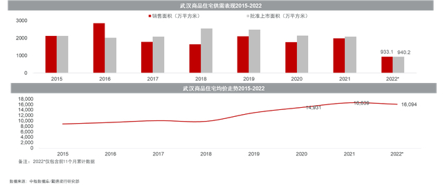 (2015年至2022年前11个月,武汉商品住宅供需表现和均价走势。戴德梁行/图)