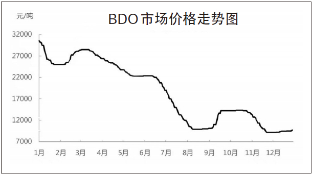 2022年“金九银十”期间,BDO市场受装置检修、供应减少、竞拍高价挺市以及下游厂家节前备货等利好推动,BDO价格触底反弹大幅上行,9月价格涨幅达42%,走出年内第二次上涨行情。进入10月,需求低迷压制BDO价格涨幅,国内BDO行情以震荡为主。11月,BDO市场大幅单边下行,跌幅达32%。此后BDO市场供需矛盾不断加剧,个别企业对外指导价格已跌至9500元,市场黯然收尾。