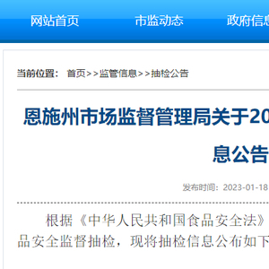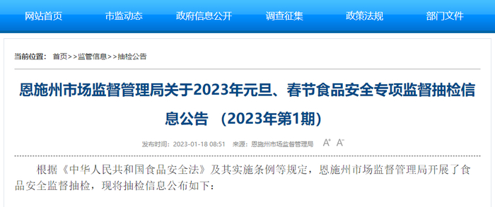 湖北省恩施州市场监管局发布2023年元旦、春节食品安全专项监督抽检信息