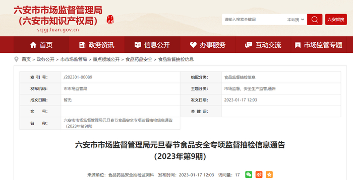 中国质量新闻网讯 2023年1月17日,安徽省六安市市场监督管理局发布元旦春节食品安全专项监督抽检信息通告(2023年第9期)。据通告,近期,六安市市场监督管理局抽检13类食品260批次样品。其中,抽检火锅底料等调味品35批次,根据食品安全国家标准检验和判定,全部合格。