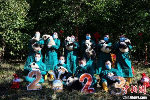 据介绍,2022年,中国大熊猫保护研究中心共成功繁殖存活8胎13仔。今年6月21日大熊猫“博斯”产下一对双胞胎,拉开产仔季序幕,8月21日野外引种大熊猫“乔乔”顺利产仔为产仔季画下圆满句号。中国大熊猫保护研究中心专家魏荣平介绍道:“今天亮相的大熊猫宝宝有10只,最大的是“博斯”仔7个月大,最小的是“张卡”仔5个月左右。没有来亮相的3只大熊猫宝宝中,有1只和妈妈一起,喊不出来。另外2只被选作大熊猫野化培训对象,目前和妈妈在核桃坪基地生活。亮相结束后,我们会把大熊猫宝宝送回妈妈身边,让妈妈继续哺育成长。春天即将来临,新一轮大熊猫繁育季又将开始了,让我们一起期待2023年的大熊猫宝宝吧。”