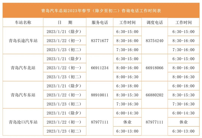 青岛汽车总站咨询电话的服务时间调整如下
