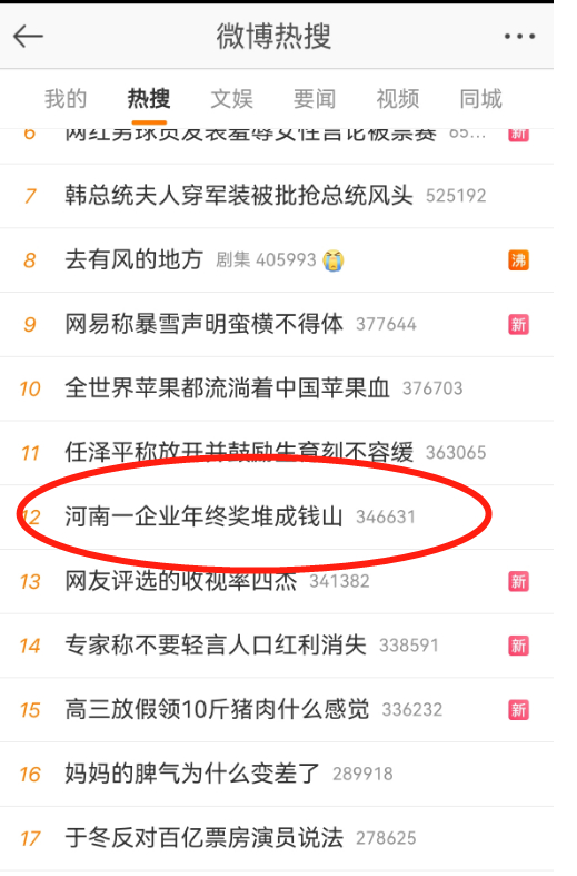 具有视觉冲击力的现场发钱仪式,加上知名歌手助阵,使得1月17日晚,河南矿山抖音号的年会直播吸引点赞超11万,相关消息更是冲上微博热搜榜。