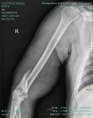 一年多前,他接诊过一例扳手腕骨折的病例至今印象很深。也是一个小伙子,酒后和朋友扳手腕后,手臂一阵剧痛,马上肿起来了。到医院一检查,发现发生了“肱骨干断裂”,而且情况很严重,骨头已经变成了“螺旋状”。
