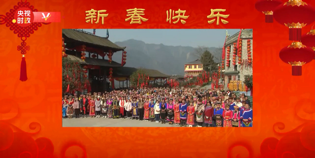 当日下午,习近平总书记与四川省绵阳市北川羌族自治县曲山镇石椅村群众连线交流。群众身穿羌族传统服饰,聚集在当地最著名的景点石椅羌寨中。“新年好”,随着总书记的新春问候和挥手致意,村民们爆发出热烈的掌声和呐喊。站在后排的村民,双手高高举起“羌红”,向总书记表达新春祝福。