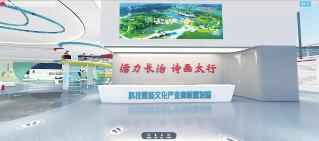 长治展馆的整体设计,不仅体现了长治市深厚的历史文化底蕴,同时,结合线上展示技术需求,突破现有VR热点跳转展示方式,升级为步进式(深度全景)和漫游式VR虚拟展厅,大幅提升虚拟展厅三维空间体验,虚实融合,丰富展现,提升观众体验感。长治展厅分为上下两层,以“活力长治诗画长治”为主题,集合了一批长治文化高新技术企业,如高科、龙芯、振东等,充分展现长治市在文化设备制造能力上的优势,核心文化企业以八义窑陶瓷、长治堆锦等为主。长治八义彩陶是中国瓷器历史上第一次将色彩运用在陶艺上,被称为世界彩色瓷器的鼻祖。堆锦有立体国画的美誉,多次在国内外获奖。在展馆设计上,以成长、融合、创新为理念,引入文博会文化元素、未来科技元素、绿色生态元素,体现科技赋能长治文化产业发展,展现全市优秀文化产业资源。