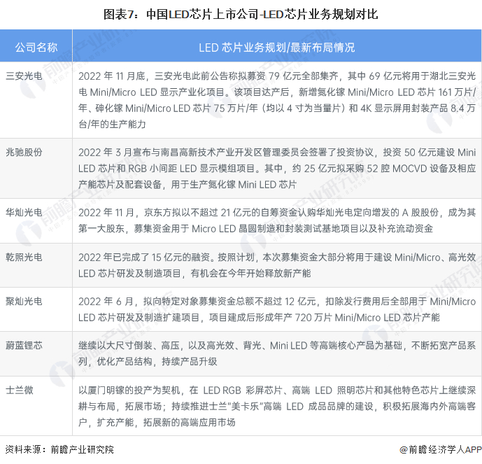 LED芯片代表性企业业务布局情况