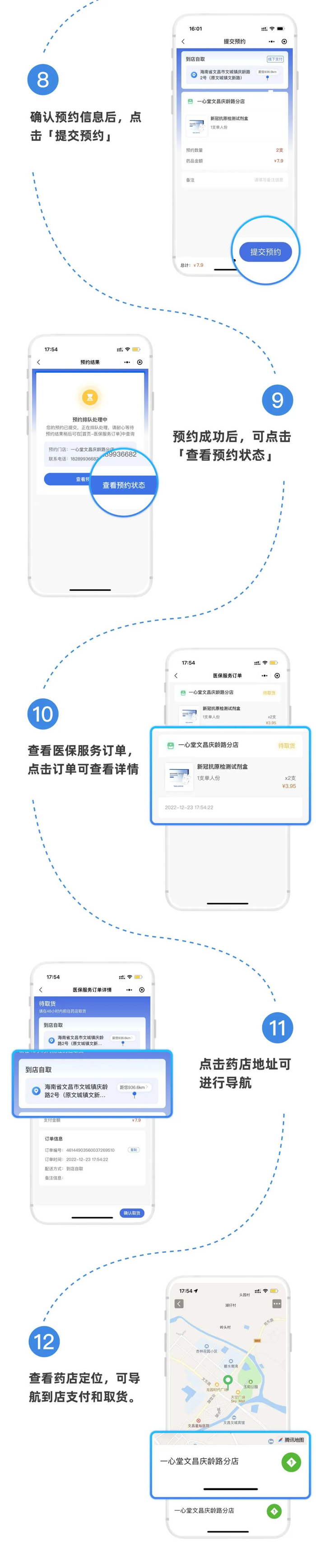 以上药品在每日8:00—20:00对参保人开放预约,海南省城镇职工参保人购买时可使用医保个账支付。参保人预约成功后,可当天或次日凭预约信息和医保电子凭证到线下门店进行支付和取货。