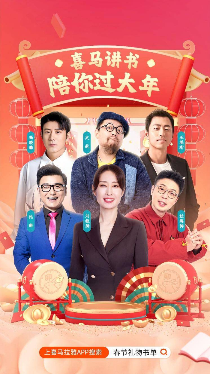 新春佳节之际,喜马拉雅经典自制讲书专辑《喜马讲书》特别联合上海⼈⺠出版社·世纪⽂景、上海教育出版社、江⻄⼈⺠出版·果麦、⽣活·读书·新知三联书店·光尘和中信出版社,精选五本经典好书,带来春节特别节目。同时,还携相声演员高晓攀、知名演员刘敏涛、知名主持人沈南、知名编剧史航、知名主持人杜海涛以及设计师和《最强大脑》选手王昱珩给大家拜年和推荐书籍,陪伴大家度过一个充实愉快的假期,以全新的面貌来迎接充满希望的兔年。