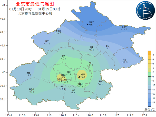 18日20时至19日08时,南郊观象台最低气温为-7.6℃(19日06:45)。