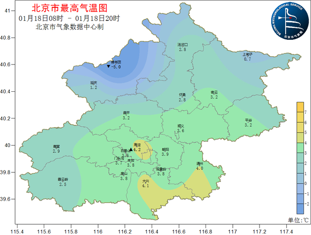18日08时至18日20时,南郊观象台最高气温为3.8℃(18日14:54)。