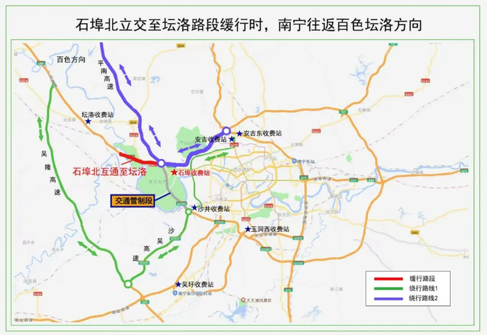 (四)G7201南宁绕城高速石埠北立交至坛洛路段发生拥堵时: