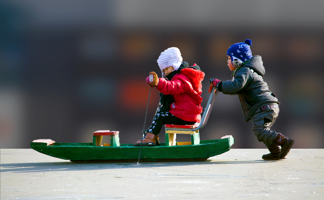 滑冰车是孩子们在冬天里最大的快乐