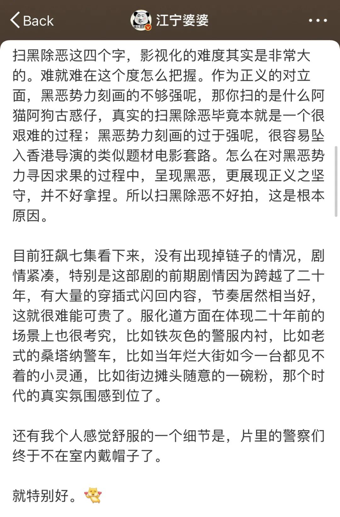 现在就是很后悔,几天前点开了《狂飙》