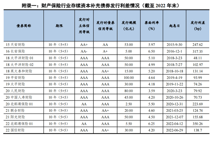 资本补充方面,2022年8月,中国人民银行、银保监会发布《关于保险公司发行无固定期限资本债券有关事项的通知》(简称《通知》),自2022年9月9日起实施。根据《通知》内容,保险公司发行的无固定期限资本债券应当含有减记或转股条款,当触发事件发生时,无固定期限资本债券应当实施减记或转股;触发事件包括“持续经营触发事件”和“无法生存触发事件”,持续经营触发事件是指保险公司的核心偿付能力充足率低于30%。无法生存触发事件是指发生以下情形之一:一是银保监会认为若不进行减记或转股,保险公司将无法生存;二是相关部门认定若不进行公共部门注资或提供同等效力的支持,保险公司将无法生存。无固定期限资本债券的发行将进一步拓宽险企资本补充渠道,提高险企核心偿付能力充足水平。