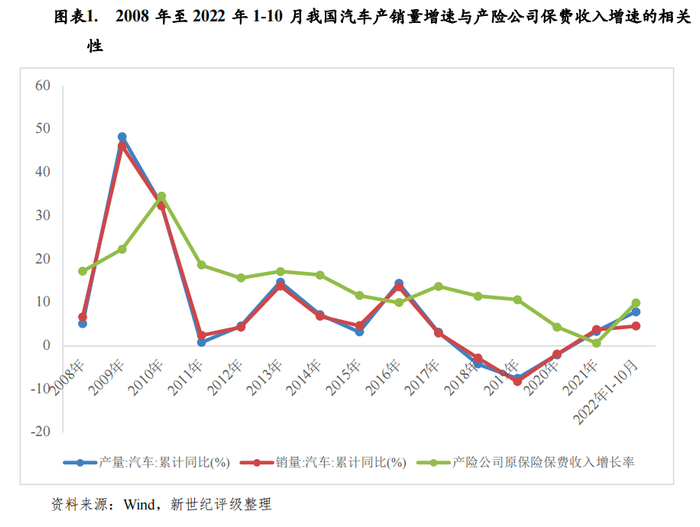 1. 2022年以来,得益于购置税减半等政策持续发力、新能源汽车高速增长,我国新车产销量同比实现增长,叠加上年同期车险综改影响下低基数的保费收入,当年产险公司保费收入增速明显回升。