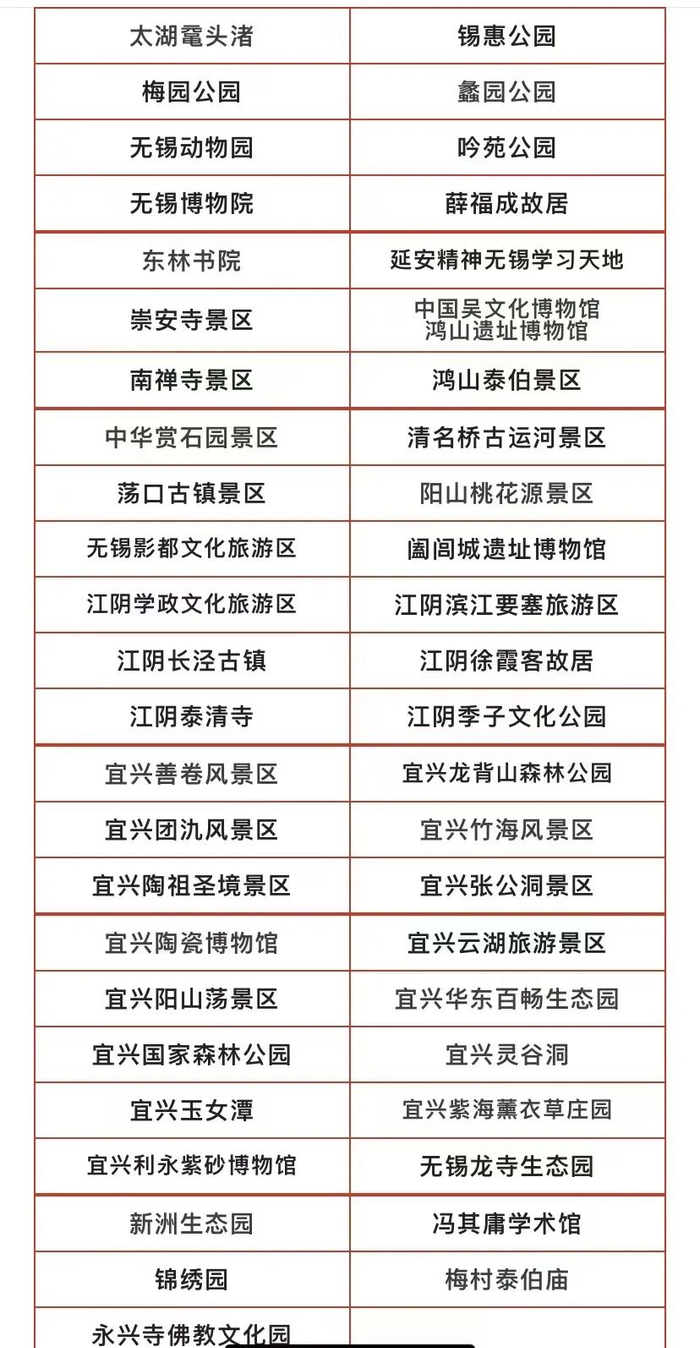 2023年春节假期至元宵期间(1月21日至2月5日),无锡市共有47家景区免费开放。具体名单如下: