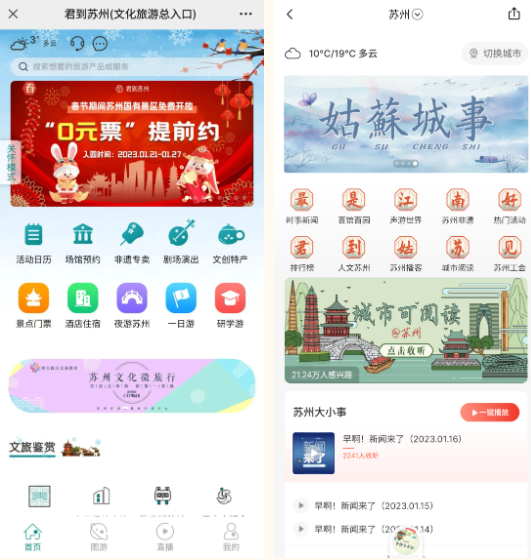 发挥线上+线下“双引擎”模式,通过“君到苏州”文旅总入口,市民和游客可全面了解食住行游购娱等当季优惠信息、最新活动及旅游攻略,实现线上预约与购买等服务。