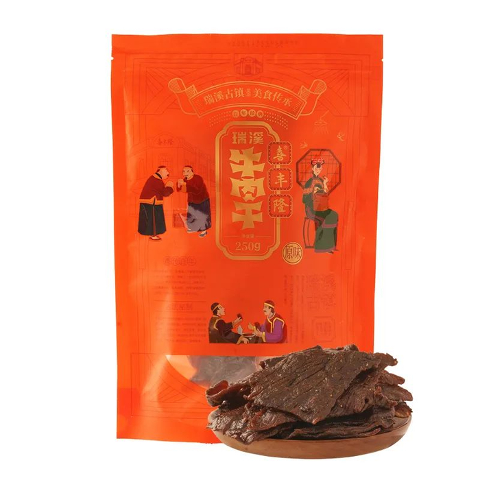 瑞溪镇牛肉干的生产已有上百年历史,酥香可口,越嚼越香。每包都是独立包装,打开吃不完也不怕浪费。过年走亲访友带上瑞溪牛肉干,那是倍有面儿~
