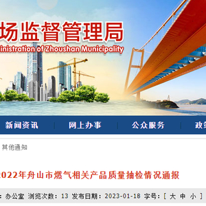 浙江省舟山市市场监管局通报2022年燃气相关产品质量抽检情况